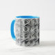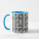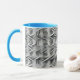 This is a Habatour Creations coffee mug, filled with an authentic monochrome abstract geometric digital pattern design.