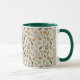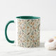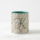 A boho botanical leaves two tone mug with a single letter monogram. Colors are browns, greens, terracotta and beige. The perfect gift for the coffee or tea lover in your life.