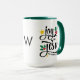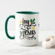 Personalized JOY IN JESUS Christian Christmas mug with CUSTOMIZABLE MONOGRAM, bold black script typography and holly. Ideal personalized drinkware during the festive season, with a strong Christmas message of joy in Jesus all year round. You can PERSONALIZE with your monogram or initial at the center. Matching gifts available.