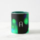 CANECA MONOGRAMA DE BOLHAS FRACTAIS AZUIS VERDES NEGROS