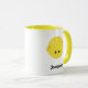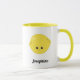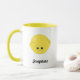 Uma caneca branca e na moda com um adorável limão sorridente kawaii e um espaço reservado para texto editável para seu nome ou texto personalizado em um script moderno e ousado. Personalize facilmente este design para corresponder ao seu estilo clicando em "Personalizar" para ir para a ferramenta design e adicionando o seu próprio texto ou detalhes personalizados. Este doce design é um presente perfeito para comida e amantes frutas.