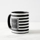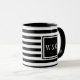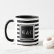 Caneca de monograma de iniciais personalizadas elegantes com um padrão de listras pretas e brancas com suas iniciais. Criado por Thisisnotme©