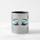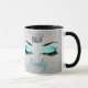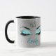 Esta impressionante Turiquoise Glitter Eyes Monograma Mug apresenta uma Coroa da Rainha Prateada e um par de tampas oculares com a sombra brilhante Turquesa, uma camada de efeito diamanté com longas chicotadas pretas sobre um fundo de efeito reluzente prateado. Personalize com o nome de sua escolha em Turquesa. Concebido por Jacqueline.