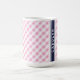 Caneca monograma do padrão gingham do marinho rosa-pré-di