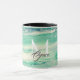 Uma caneca colorida concebida para se assemelhar ao mar. Escreva o seu nome inicial nesta caneca para que seja sua.