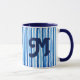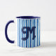 Eu criei esta caneca de monograma náutico com um padrão de listras pintado à mão em dois tons de azul no papel branco. Listras azuis e brancas para um novo começo no seu dia!