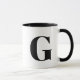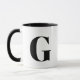 Simples, tendenciosa caneca de café monograma, com letra inicial, em tipografia moderna minimalista a preto. Um presente personalizado perfeito.