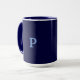 Monograma P Marinho Blue Combo Mug Esta é uma caneca azul marinho combo. A caneca tem um monograma P em ambos os lados. O estilo combo da caneca tem um interior e uma alça vidrados. Esta caneca combo monograma tem um interior azul marinho e uma alça. Você pode alterar a letra do monograma clicando no botão Personalizar. Engraçado, único, bonito, ou pessoal, é a sua escolha para a caneca de café perfeita. A parte externa da caneca apresenta uma base branca brilhante para sua foto, logotipo, padrão ou ditado, enquanto a borda e a alça são vívidas em cores ricas. Corresponder ou complementar a cor do seu conjunto de dinnerware existente, ou oferecer a seu amigo uma caneca em sua cor favorita. As canecas são micro-ondas e máquinas de lavar louça seguras. As canecas combo são feitas com forte construção cerâmica. Essas canecas combo atendem aos requisitos do FDA para segurança de comidas e bebidas. As canecas são impressas a pedido em Reno, NV.