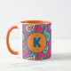 Caneca Monograma personalizado de padrão rosa-boêmico de