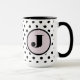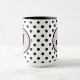 Esta caneca apresenta um padrão de pontos pretos sobre um fundo branco com um monograma personalizado enquadrado sobre um fundo rosa pálido. Clique em Personalizar esta Modelo para personalizar facilmente o monograma e personalizar ainda mais as cores, a fonte e adicionar texto adicional, se desejar.