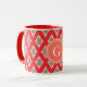 Caneca Monograma tribal do teste padrão do ikat vermelho