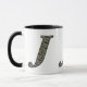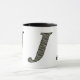 Letra J monográfica elegante cheia de delicadas flores brancas de hidrangea café ou caneca de chá. Clique em Personalizar para adicionar texto. ideia de presente de excelente. Esta imagem está disponível em muitos produtos da minha galeria.