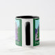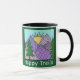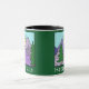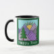 Caneca russa com montanhas roxas e contornos florestais e as palavras "Happy Trails".