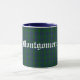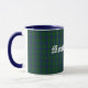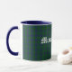 Caneca de clã escocesa, com aspecto de excelente, feita com o padrão clássico de Montgomery azul e verde / xadrez Montgomerie. O texto no estilo do mundo antigo em branco lê Montgomery e é personalizável para ler o que você quer.