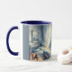 This dreamy coastal scene captures the serenity of a moonlit night, as soft blue and silver hues bathe a cozy bedroom in gentle glow. Billowing white curtains frame the open window, where moonlight dances across calm ocean waves and distant cliffs. A calico cat curls peacefully atop the rumpled bed, adding a quiet charm to the intimate, cottagecore-inspired setting. Lanterns and fresh flowers enhance the sense of warmth and stillness, while the soft textures and layered linens evoke a tranquil, lived-in feel. Perfectly blending cozy coastal aesthetics with a touch of whimsy, this artwork invites you into a peaceful night of rest by the sea. AI generated artwork.