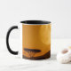 A cinematic silhouette of a lone traveler and loyal dog standing beneath a glowing full moon. This warm, atmospheric design evokes adventure, friendship, and quiet reflection—perfect for coffee lovers who enjoy meaningful art with their daily drink.