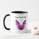 Esta caneca de café ou chá tem dois morcegos peludos assustadores com asas abertas em voo. Uma é rosa vibrante e a outra é verde vibrante. Personalize seu texto com o modelo.