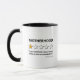 A mãezinha engraçada com a palavra "maternidade", com 1 em cada 5 estrelas, uma crítica ruim dizendo "deprimido do sono, corpo sagaz, não a recomendaria", e seu nome.