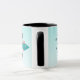 Uma escola de natações de peixes negros, escandinavos, em formação à esquerda, enquanto um peixe de chalé e rosa, de pensamento livre, começa a caminhar na direção oposta, pronto para viver a vida nos seus próprios termos. Um fundo de gradiente aqua-branco cria um efeito subaquático para a nossa caneca. O ditado motivacional do outro lado da caneca diz, "A vida é VIDA quando você toma aquele assustador passo delicioso que te liberta para ser você mesmo." O ditado é © 2011 por Barbara Casey.