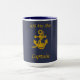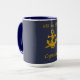 Mug de membro da tripulação. Ilustração central de Âncora e corda em cor de ouro. Personalize a legenda no topo com o nome do navio e na parte inferior com a classificação/título da tripulação.