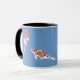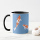 Ilustração a lápis colorida de quatro Koi ou Carp, flutuando em uma lagoa de água azul, um presente delicioso para quem ama peixe ou natureza. Também corresponde ao:
