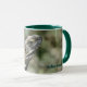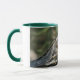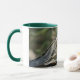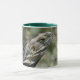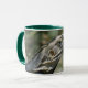 Uma caneca de bebida com a imagem de um lagarto muito grande, a cerca de 15 centímetros da cabeça à cauda, se afundando em uma parede de rocha. O texto pode ser personalizado: alterar o texto, alterar as fontes, alterar o tamanho, alterar as cores, reposicioná-lo ou removê-lo completamente.