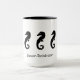 Cinco cavalos-marinhos negros nadando em uma linha ao redor da caneca. Abaixo, você pode personalizar com seu nome ou outro texto (ou remover o texto inteiramente).