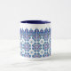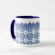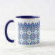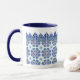 Esta caneca impressionante apresenta um dentro e uma alça azul e um design de azulejo intrincado no exterior com azul e roxo. Ele vai ajustado lindamente em qualquer número de configurações. Este design é originário de um azulejo real do Azulejo de Oregon Fay Jones Day.