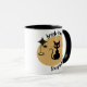 Uma caneca de café que diz "Break from the Grind" com uma imagem de Halloween do século Médio de um gato negro com aranhas suspensas é um design de inspiração e assustador, frequentemente vestido por aqueles que buscam uma escapatória nostálgica e lúdica de sua rotina diária. Sugere um desejo de abraçar uma abordagem mais branda e branda da vida, mesmo durante os meses mais negros.