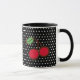 Cerejas brilhantes em fundo de bolinhas decoram esta caneca de café. O design é da arte original.