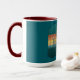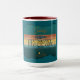 Uma caneca de dois tons no logotipo de cor do pôr do sol.