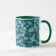 Quadrados azuis, aqua e lacas decoram esta caneca de café com estilo retrô. O design é da arte original.