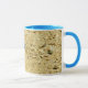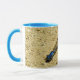 Dragonfly sentada na areia, uma sombra é visível debaixo do corpo. Esse inseto, da ordem de Odonata, tem asas transparentes e olhos grandes. O azul brilhante do corpo é pego na cor da jante e da alça da caneca. presente de excelente para o entomologista em sua vida.