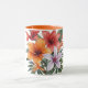 Un mug avec un bouquet explosif de fleurs exotiques aux couleurs chaudes et vibrantes — lys orangés, fleurs corail et blanches sur fond sombre et élégant. Un design tropical et luxuriant qui capture toute la beauté et la générosité de la nature estivale. Parfait pour les amoureux des fleurs, de la nature et des couleurs éclatantes.