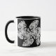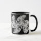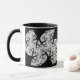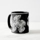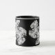 Esta design de caneca assombrante foi criada de um fractal. Ele se parece com um aglomerado de árvores negras com troncos negros e galhos tortos contra um céu noturno branco iluminado pela lua. Parece que você está deitado no chão olhando para o céu dentro de uma floresta densa e assustadora. Que sua imaginação corra. Uma caneca de estilo ruivo é mostrada aqui, mas a design também está disponível em outros estilos de caneca, incluindo canecas de viagem e canecas de vidro fosco.