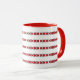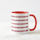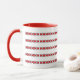 A imagem em forma de gravata de arco é replicada em 5 linhas ao redor da caneca. A imagem é vermelha com contorno preto.