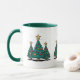 Aproveite uma bebida acolhedora com esta caneca festiva de cerâmica, com um belo trio de árvores de Natal. Cada árvore é decorada com ornamentos coloridos e revestida com uma estrela ouro, criando um sentimento clássico de feriado. A árvore central é um pouco mais alta, dando um encantador efeito em camadas, enquanto flocos de neve gentis caem ao seu redor para completar a cena do inverno. O interior verde e a pega adicionam um toque sazonal adorável, fazer esta caneca perfeita para apreciar bebidas quentes durante a época de férias.