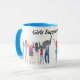 As raparigas deveriam construir-se umas às outras, não se rasgar umas às outras. Esta caneca mostra garotas unidas levantando as mãos em apoio umas às outras. Rock on Queen!