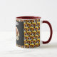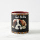 Bela xícara de café tranquila de manhã com seu Santo, Bernard, e repetindo o padrão. Vermelho castanho melhora a pega e o dentro. O pãozinho foi encontrado descansando sobre um fundo de preto. Os cachorros-padrão dormem em amarelo para iluminar a xícara. Faz um presente excelente para um pai, marido, filho, irmão e amante do Santo Bernard. Projetado por AbuNana.com.