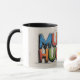 Um design vibrante, desenhado à mão, com a frase brincalhona "Mugger Hugger" em letras corajosas e coloridas — perfeito para amantes de café que abraçam suas canecas com alegria e calor.
