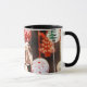Caneca Mulher bebendo café com bolas de Natal