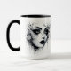 Caneca Mulher Gótica Bonita. Uma bela face de Mulher Gótica em preto e branco está nesta caneca.
