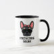 Trate-se ou alguém que você conhece que é um buldogue francês, mãe de uma gata de café da mãe. Apresentando um rosto de buldogue francês preto e bronzeado num estilo cartoon moderno, esta caneca de café é um excelente presente para as novas e já amáveis e orgulhosas Mães frenquias.