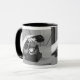 Caneca Mulher que pegara o telefone próximo acima da mão