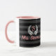 Uma caneca de presente única para professor ou qualquer senhora com estilo infeliz. Estilo de tendência personalizado elegante. Largo preto horizontal sobre fundo de faixa preta com letras cor-de-rosa e fundo branco de riscar branco. Adicione nome, letra de solteiro monograma inicial e nome a esta caneca de tendência personalizada.