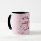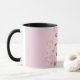 Personalized Mum you're the Best Mother's day coffee mug featuring, pink, yellow and blue doodle heart with the words "Mum you're the Best" on a plain blush pink background and a mother's day verse inside (all can be changed to suit).
