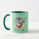 Esta charmosa caneca apresenta uma ilustração deliciosa de um gato brincalhão vestido como um elfo de Jester, tocando alegremente a música num pano de fundo de um floco de neve.