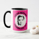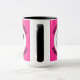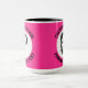 My Face on a Large custom Combo Mug, 15 oz., 3.4" diameter x 4.5" high, with STRAWBERRY PINK #FF2F92 background and COLLEGE text font. (A combo mug has black, hunter green, maroon, navy blue or yellow handle + inside). Custom photo and personalized text template with two individually customized design areas (see store for more background colors, font styles, and alternative template options).