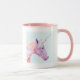 Místico Unicórnio I de Victoria Borges. Possui um unicórnio rosa e roxo com traços semelhantes a pincel.