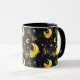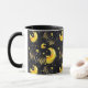Embrace the magic with this mystical mug featuring a captivating design of golden moons and bats against a sleek black ceramic backdrop. Perfect for coffee, tea, or hot cocoa, this 11 oz combo mug combines style and durability with a comfortable handle.